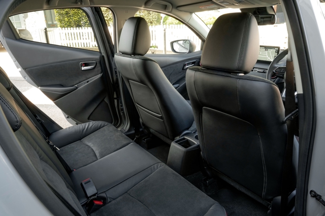 There's a reasonable amount of room for rear-seat passengers, although you'd be better looking at the bigger Mazda 3 (or an SUV like the Mazda CX-30) if you regularly expect to travel with people in the back. The relatively high window line means it feels rather claustrophobic in the rear, while no one's going to thank you for making them use the middle seat.