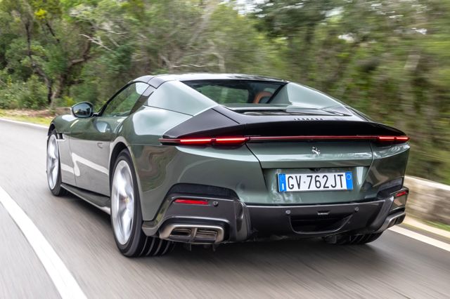 Elements of flair here are more referential — a nod to aficionados of the marque who will appreciate the historical touches. That includes the optional leather upholstery striping in homage to its great 12-cylinder forebear, the Ferrari 365 GTB/4, nicknamed 'Daytona'.
