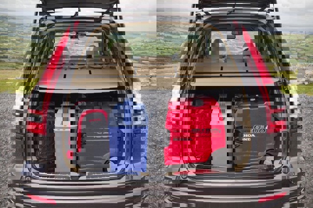 In the back, as before, the rear seats slide and tumble 60-40 leaving a completely clear, low and very capacious load deck. The backrests fold and recline slightly 40-20-40. The spare wheel is now a space-saver located under the boot floor. There's a strong shelf, splitting the boot in half horizontally (ideal for dogs on top; guns and tackle underneath). And the back door is now top-hinged, hatchback style.