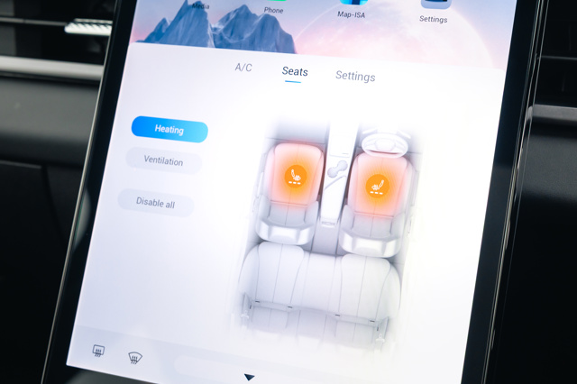 Disappointingly there are no physical adjusters for its climate control functions, with those also being accessed via the infotainment interface. At least the temperature settings are permanently on show.
