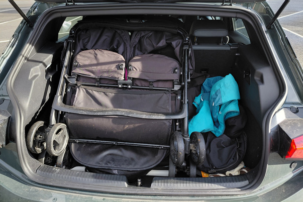 Take our dreaded double buggy, for example — one of the most impractical things we own. Does it fit in the Born’s 385-litre boot sideways? No. What about upright? Yes — but only when turned backwards so the handle slips neatly behind the rear headrests.
