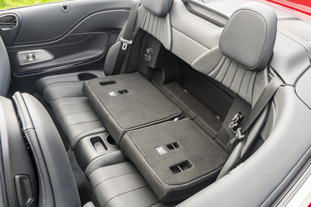 They do at least contain Isofix child seat mounting points, although access to them is awkward with the roof up. A loop on the top outer corners of the front seats acts as a switch to glide them further out of the way when their seatbacks are tipped forwards.