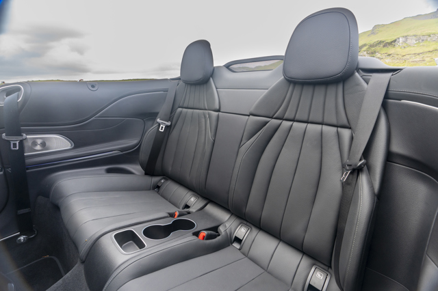 It's important to note that due to the hood's electrically operated mechanism and the need to strengthen the car's structure, the Cabriolet's rear seats are not only narrower with shorter cushions than those in the CLE Coupe, the seatbacks are also at a more upright angle.
