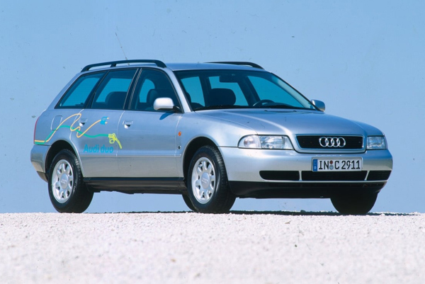The Audi A4 Duo, which Audi claims to be the first production plug-in hybrid, combined a 90bhp 1.9-litre diesel engine with a 29bhp e-motor. Like modern PHEVs it could run at slow speeds for a short while on e-power alone, with charging both from regenerative braking, like a modern mild-hybrid, and from a standard domestic plug socket.