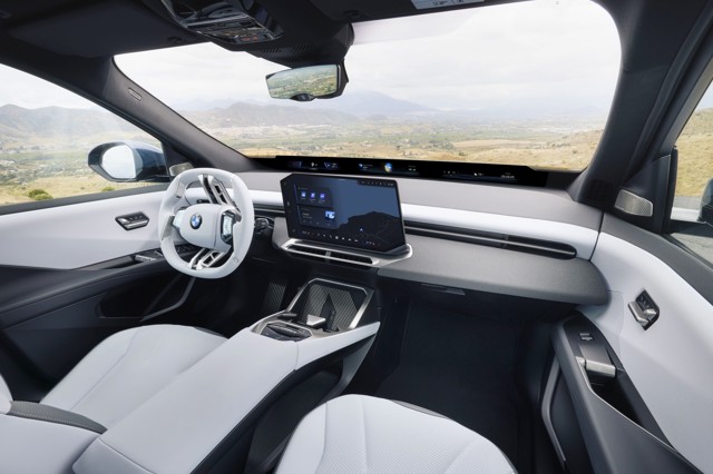 On the inside, the iX3 debuts the BMW Panoramic iDrive with full-width windscreen display and the latest BMW Operating System X. Leather-free Econeer materials are used as standard helping to lower the car's carbon footprint by more than 30% over its life than its predecessor.