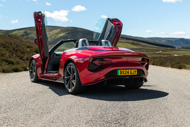 There’s a straight choice in the MG Cyberster range between the Trophy with its single 340PS (250kW) motor driving the rear wheels and the GT with twin motors producing 503PS (375kW) with additional traction courtesy of its four-wheel drive arrangement.