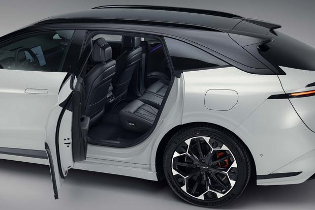 The 100kWh battery in rear-wheel drive guise has a range of 406 miles. There’s also a dual motor all-wheel drive model, producing 646PS for 0-62mph in just 3.3 seconds. All are limited to a 130mph top speed.