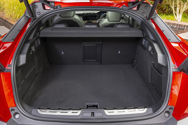 The E-408 has an impressive 536-litre boot, which matches the capacity of a petrol-powered 408 and greatly exceeds the 471 litres managed by the plug-in hybrid version. Audiophiles will lose out because of their love of sound, though, with the optional Focal audio system trimming the boot capacity to 508 litres, we assume because of the presence of a subwoofer in the boot.