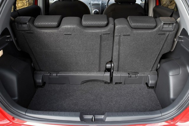 Stiffer chassis with improved steering and handling as per Thai Yaris based Soluna Vios. Torsion beam rear axle. Boot space up to 274 litres with rear seats up and 734 litres to window height rear seats folded. Rear seats fold completely flat.